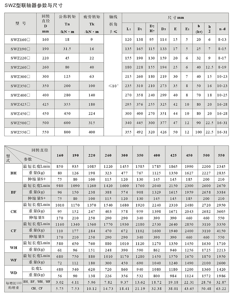 泰軸公司主要生產(chǎn)原機械工業(yè)推行的行業(yè)標準JB3241-91 swp.JB5513-91 swc.JB3242-93 swz系列