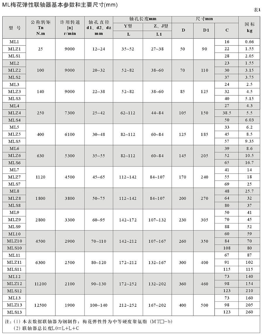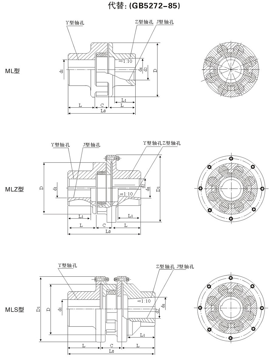 ML/MLZ/MLS/梅花形彈性聯軸器(GB5272-85)